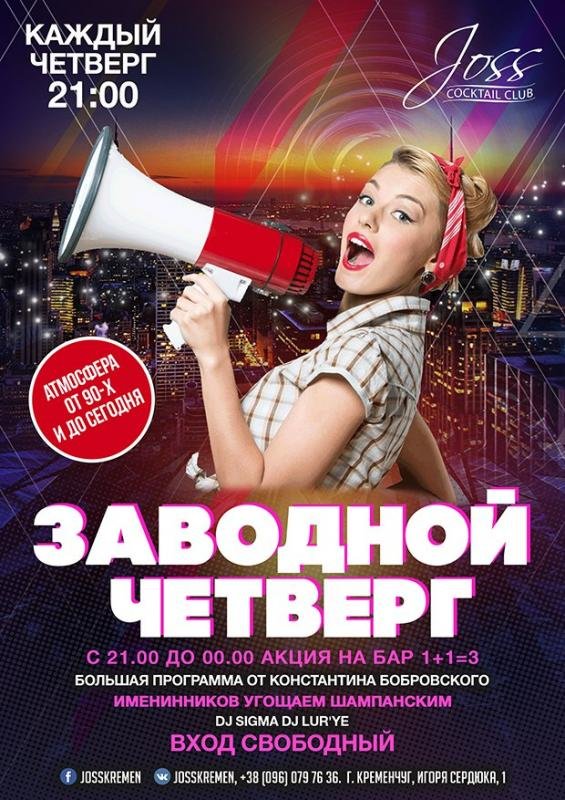 С 21:00 до 00:00 акция на бар 1+1=3.