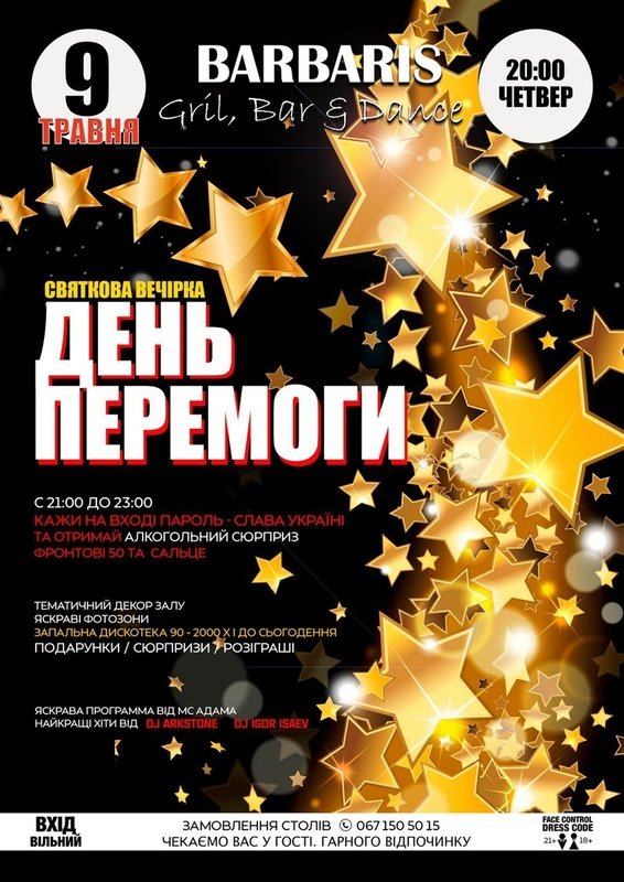 З 21.00 до 23.00 кажи на вході пароль: Слава Україні, та отримуй алкогольний сюрприз.