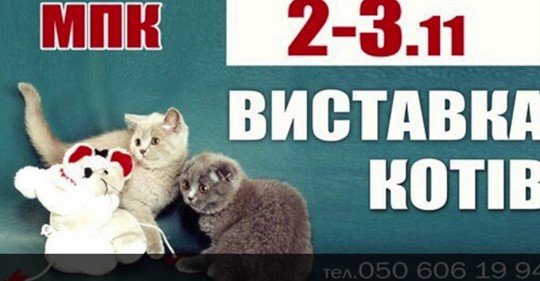 2 та 3 листопада в міському палаці (МПК) запрошуємо Вас відвідати, подивитися, поспілкуватися та знайти свого чотирилапого друга та отримати експертну оцінку Вашого котика від суддів міжнародної категорії.