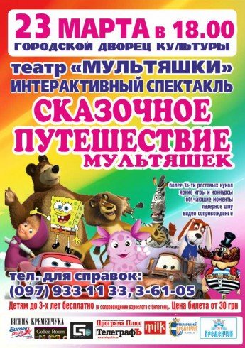 Интригующий сюжет, еще больше любимых мультяшных героев (куклы-гиганты), возможность всей детворе поучаствовать в активных, ярких обучающих играх и конкурсах, танцы и лазерное шоу, видео-сопровождение, фото на память! Веселый семейный вечер гарантируем!
