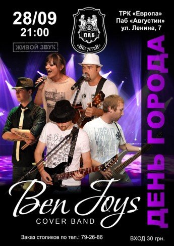 Дорогие друзья! Приглашаем вас отметить праздник города Кременчуга под умопомрачительные драйвовые хиты вместе с группой «Бен Джойз»!