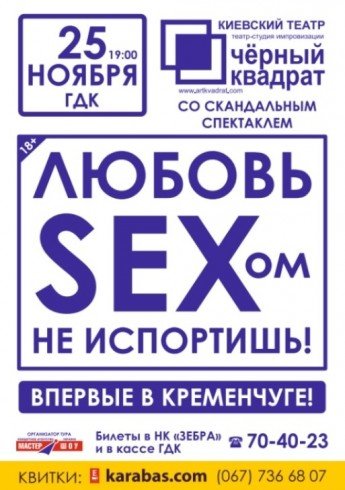 Киевский театр-студия импровизации «Черный Квадрат» представляет спектакль - комедию «Любовь SEXом не испортишь»18+