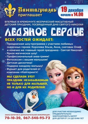 Приглашает всех малышей и их родителей на масштабный детский праздник под названием «Ледяное сердце», посвященный дню Святого Николая!