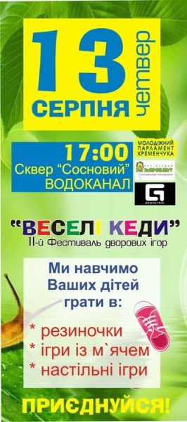 Фестиваль дворових ігор «Веселі кеди» – це соціальний проект, що ставить собі за мету відірвати дітей від комп’ютерів та повернутися до рухливого та активного способу життя, а також відновити між дітьми живе спілкування, що в сучасному світі є необхідним.