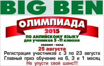 Школа иностранных языков "Big Ben" в Кременчуге приглашает на олимпиаду по английскому языку для учеников 5-11 классов.