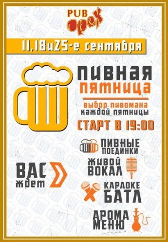 Паб орех встречает вас пенными шапками на больших кружках! Душевными пивными поединки, караоке батл и живой вокал но с холодным бокалом!