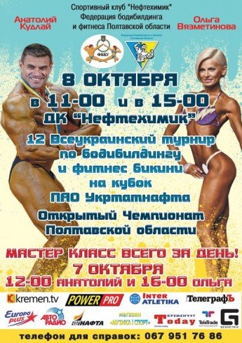 12 Всеукраинский турнир по бодибилдингу и фитнес бикини на кубок ПАО Укртатнафта. Открытый чемпионат Полтавской области.