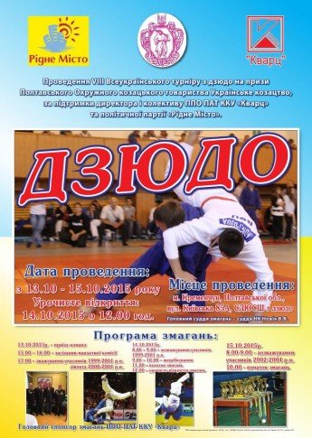 VIII Всеукраїнський турнір з дзюдо на призи Полтавьского Окружного козацького товариства Українське козатство, за підтримки директора і колективу ППО ПАТ ККУ "Кварц".