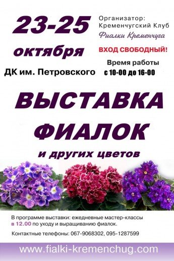 - 23 октября в 12.00: мастер-класс по уходу и выращиванию фиалок