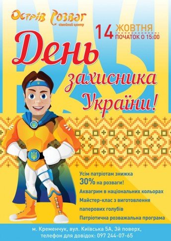 Усім патріотам знижка 30% на розваги! Аквагрим в національних кольорах. Майстер-клас з виготовлення паперових голубів. Патріотична розважальна програма.
