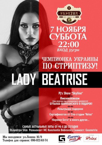 - Чемпионка Украины по стриптизу Lady Beatrise