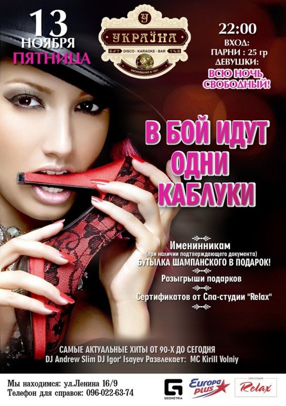 Девушки! Эта ночь Ваша! Не упустите шанс показать себя "В деле!" Докажи всем, что именно ТЫ достойна гордо носить звание "Самой стильной в "Украине!". И конечно же завоевать множество восхищённых взглядов со стороны мужчин! Ведь именно этой ночью, они попробуют побывать "В вашей шкуре!" Оценить Вас по-достоинству. И конечно же подарить Вам своё внимание!
