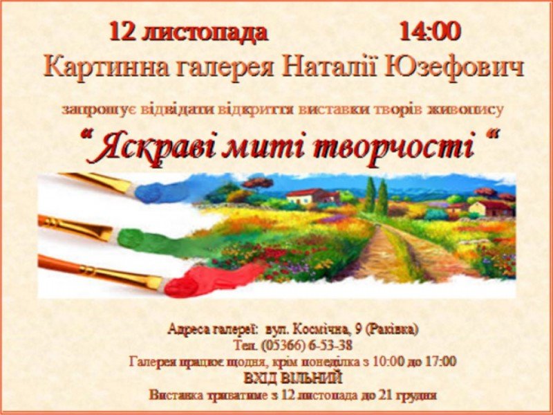 На выставке представлены оригинальные работы двух талантливых Кременчугские художниц. В экспозицию вошло 32 работы, выполненные в техниках живопись маслом и акварель. Посетители галереи смогут увидеть лирические пейзажи, букеты ярких цветов, архитектуру и пейзажи европейских столиц.