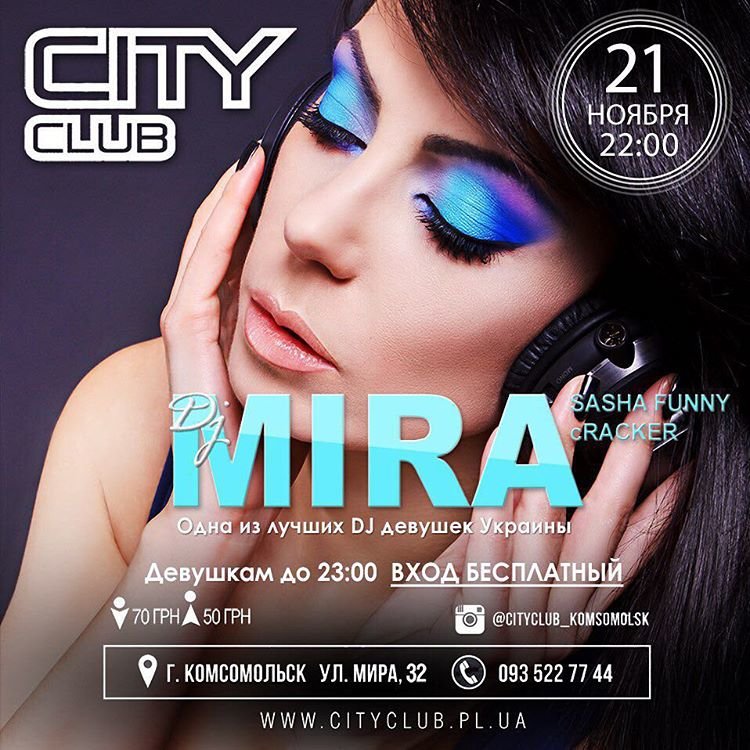 География её выступлений не останавливается на нашей стране! Она объехала Индию и Китай, а также выступает в клубах Дубаи! В эту субботу Mira для вас.