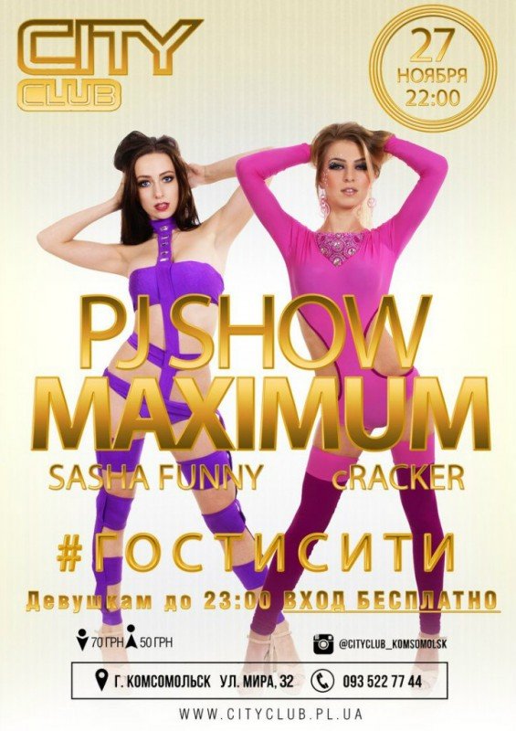 В эту ночь свежие хиты от резидентов DJ cRACKER и DJ Sasha Funny , при поддержке PJ show "Maximum".