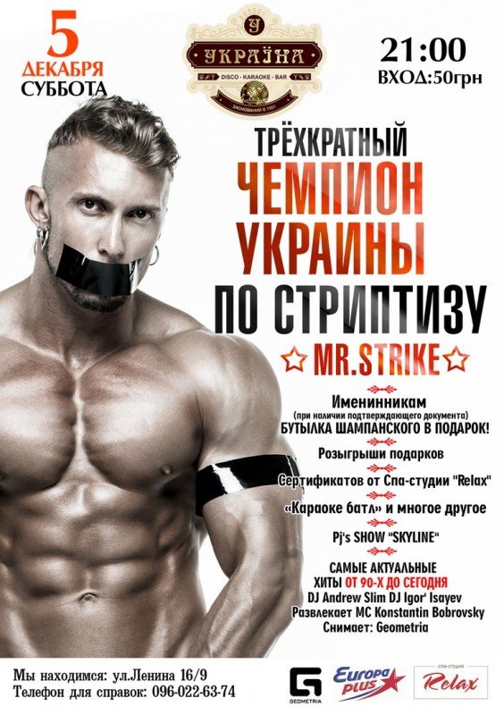 Трехкратный чемпион Украины по стриптизу MR. Strike.