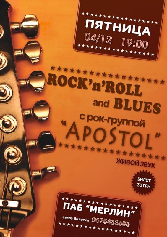 Опытные кременчугские музыканты исполнят собственные авторские композиции в стиле rock'n'roll and blues.