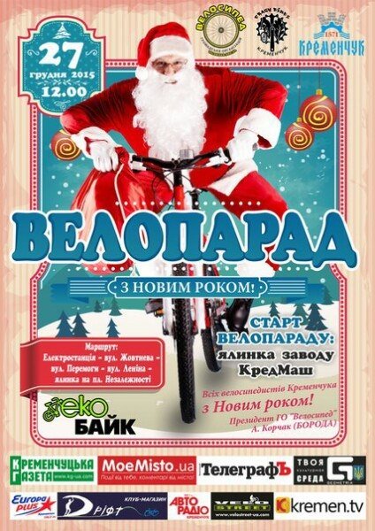 На велопробег приедет много Дедов Морозов, которые будут возить хороводы вокруг ёлки.
