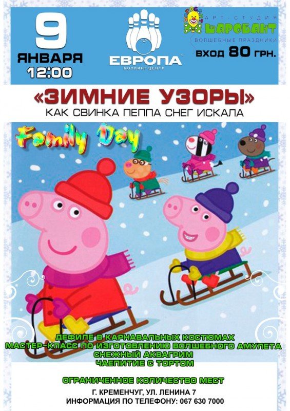 Family Day - «Зимние узоры» !Как Свинка Пеппа снег искала!