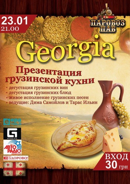 Приглашаем всех желающих окунуться в атмосферу Грузии. Вас ждет дегустация грузинских вин и блюд.