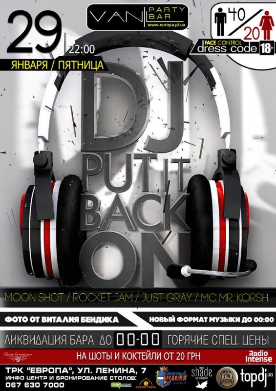 За пультом: DJ Moon Shot, DJ Jast Gray, DJ E.J, DJ Rocket Jam, MC Mr. Korsh.