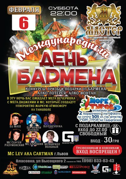 Конкурсы, призы и подарки от бармена, алко-лотерея, алко-фонтан.