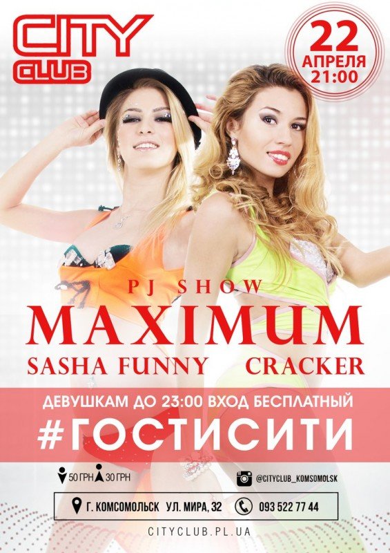 Оставляем хлопоты прошедшей рабочей недели и танцуем вместе с PJ show "MAXIMUM" под весенние хиты резидентов на фирменной вечеринке клуба #гостисити.