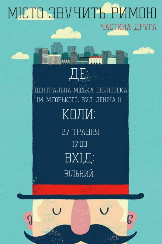 Вуличне дійство, у програмі якого - виступи цікавих поетів, музикантів - Макса Звіробоя та Саші із "Майя", а також міні-виставка картин Ясі Гольберг.