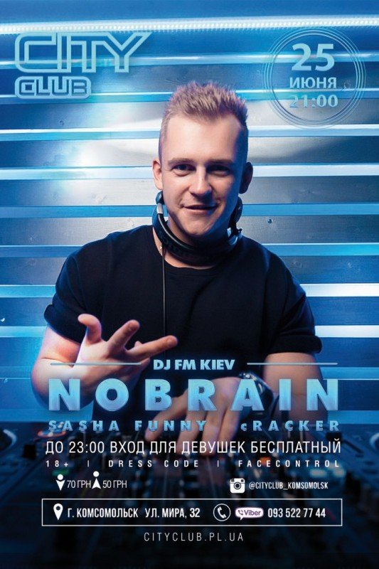 В субботу специально по Вашей просьбе, столичный диджей с многочисленным списком регалий, резидент DJFM 96.8 - NoBRAIN.