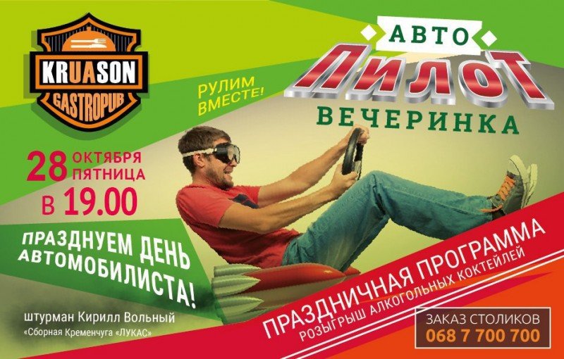 Гастропаб Kruason приглашает Вас отметить вместе с нами День Автомобилиста!