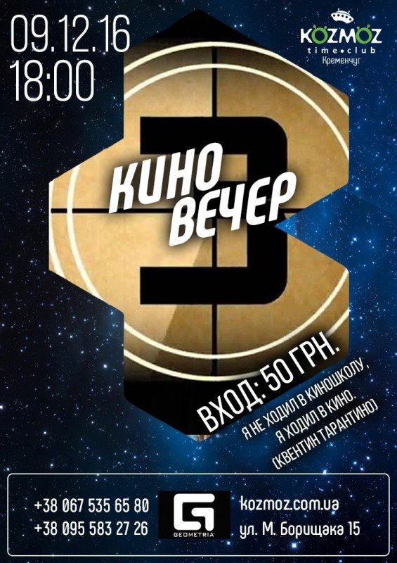 Тогда мы приглашаем вас на Киновечер в Time-Сlub Kozmoz на просмотр великолепной фантастики!