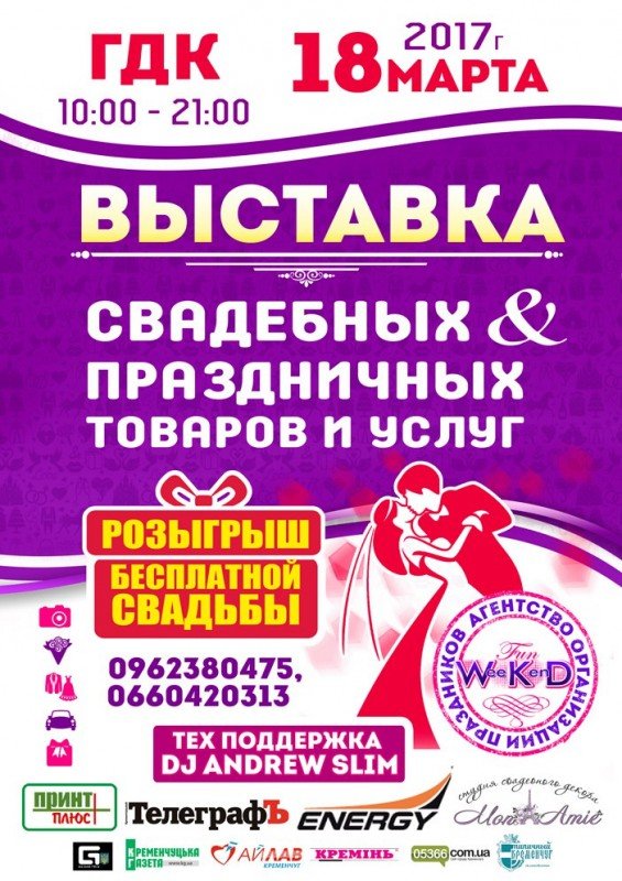 - Впервые в Кременчуге пройдет розыгрыш бесплатной свадьбы (а конкретно розыгрыш свадебных товаров и услуг на сумму 30 000 грн.)