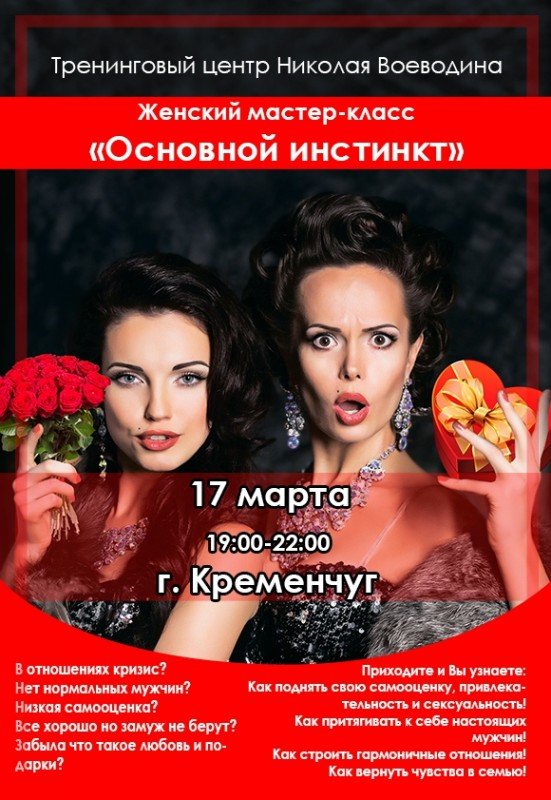 Почему женский мастер-класс Николая Воеводина называется «Основной инстинкт»?-потому, что про настоящую любовь и отношения!