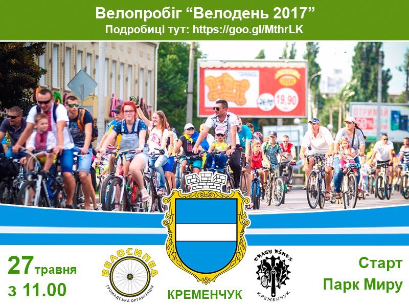 Свой неофициальный праздник «Велодень-2017» велосипедисты Кременчуга отметят традиционно – проехавшись с ветерком по улицам города. Свой профессиональный праздник велосипедисты Украины отмечают в последние выходные мая.