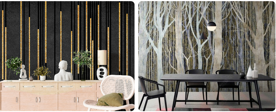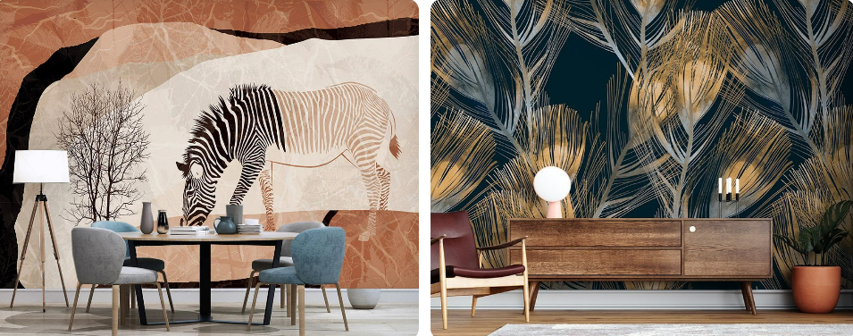 - варіанти з природними пейзажами допомагають створити спокійну та розслаблюючу кімнату;