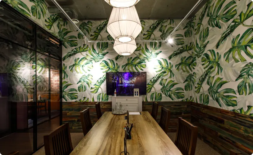 - Кімнати для переговорів та креативні зони, де можна обговорювати проекти та генерувати нові ідеї.